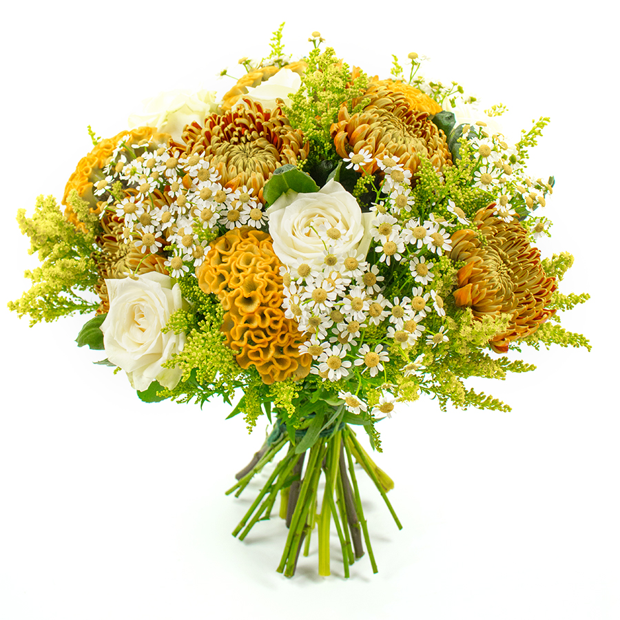 A stunning bouquet with a perfect blend of autumn colors. It was delivered on time and in perfect condition.